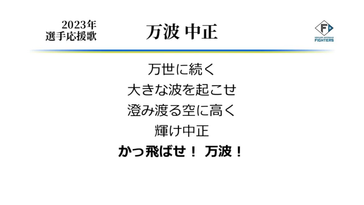 日本ハム万波選手の応援歌です。 ヒーローインタビュの第一声がいつも気の抜けたありがとうございますで へらへらしているように見せかけて、受け答えの内容はしっかりしているギャップ。 Chusei Mannami (Baseball Player)Hokkaido Nippon-Ham FightersHokkaido Nippon-Ham Fighters (Baseball Team)なんぶふじ万波中正北海道日本ハムファイターズ応援歌 NPBHUB.COM | The Fanbase of Nippon Baseball & Nippon Professional Baseball