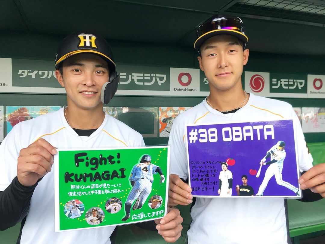 今日からセ・パ交流戦です!今日もベンチには沢山の応援ボードが✨#熊谷敬宥 選手 #小幡竜平 選手#応援メッセージ#ありがとうございます#ファンともっとプロジェクト#阪神タイガース #挑超頂 Hanshin TigersHanshin Tigers Official MediaNPB Central LeagueOfficial Mediaありがとうございますファンともっとプロジェクト小幡竜平応援メッセージ挑超頂熊谷敬宥阪神タイガース NPBHUB.COM | The Fanbase of Nippon Baseball & Nippon Professional Baseball