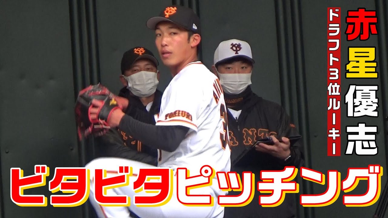 ドラフト3位で入団した赤星優志投手!ブルペンでのビタビタピッチングをご覧ください!