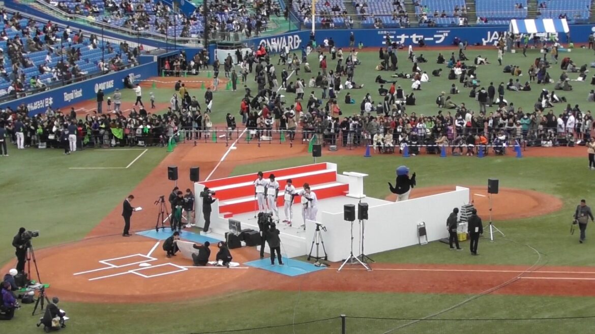 2016年11月23日東京ヤクルトスワローズファン感謝DAY ステージショーのど自慢合戦。 村中恭兵、田川賢吾、平井諒 風張蓮、石山泰稚投手の5投手が SMAPの「オレンジ」をフルコーラス YOKOHAMA DeNA BAYSTARSファン感謝DAY平井諒村中恭兵東京ヤクルトスワローズ横浜DeNAベイスターズ田川賢吾石山泰稚風張蓮 NPBHUB.COM | The Fanbase of Nippon Baseball & Nippon Professional Baseball