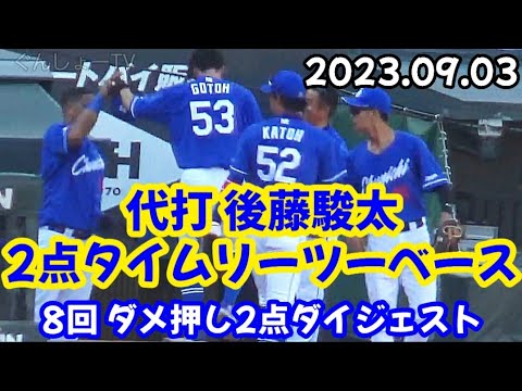 ドラゴンズ後藤駿太、代打2点タイムリーツーベースの追加点で先発・柳裕也を後方支援ダイジェスト! ~ ヒット出塁、宇佐見真吾 & 石川昂弥 ~ カープ島内颯太郎を打ち崩す