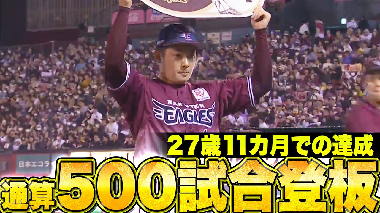 9回表、東北楽天・松井裕樹がマウンドへ。先頭の周東佑京にバントヒットを許すも、後続を抑え込んで無失点。今日もチームに大きく貢献する投球を披露し、プロ通算500試合登板を達成!! ここまで長期の離脱もなく、無事これ名“守護神”として活躍を続ける松井裕樹。27歳11カ月での達成となった。