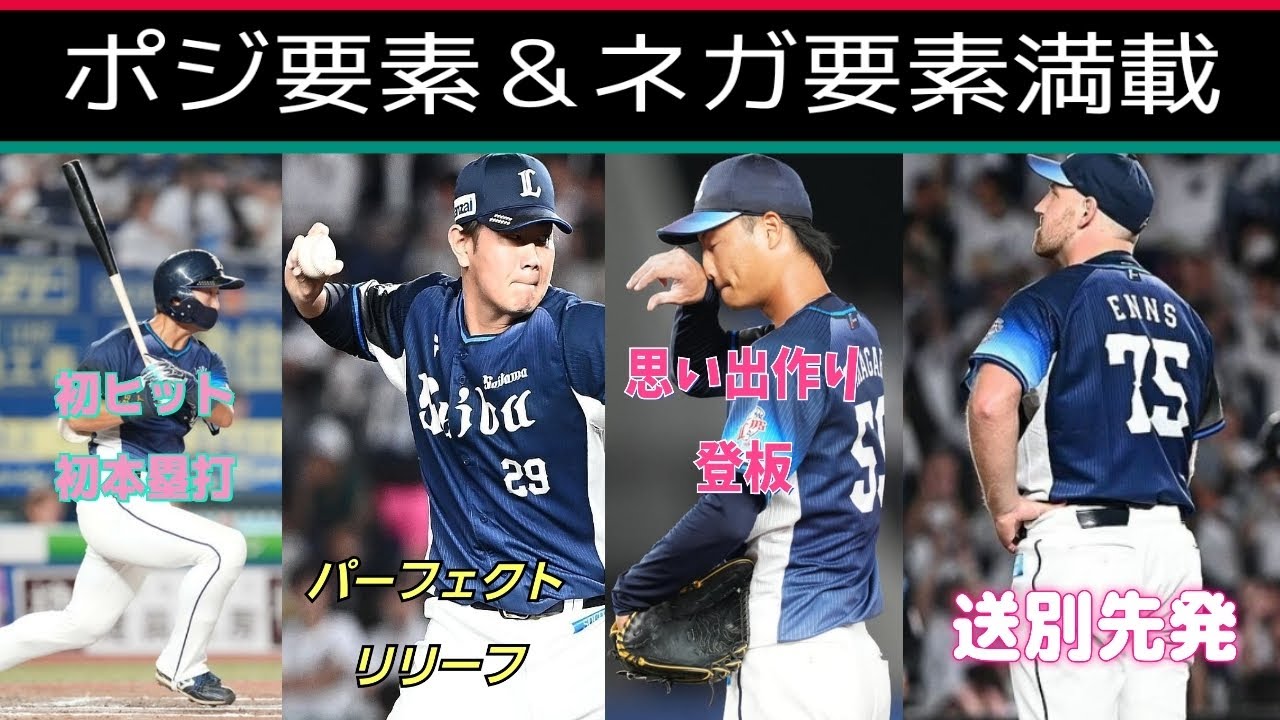 山村崇嘉内野手がプロ初ホームラン等初モノ尽くし、青山美夏人投手がパーフェクトリリーフ、大曲錬投手は思い出作り登板、ディートリック・エンス投手送別登板とポジティブ要素とネガティブ要素が満載の試合でした。