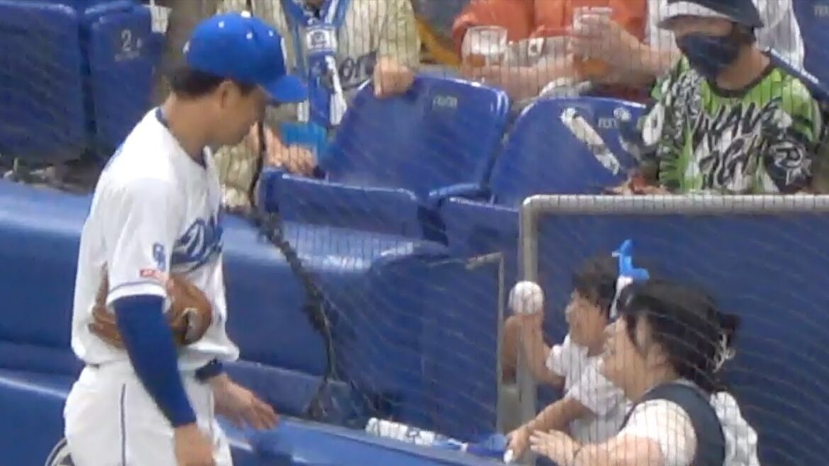 柳裕也 ドアラの耳をつけた可愛いちびっ子にボールをプレゼント 中日ドラゴンズVS広島東洋カープ 2023.9.17