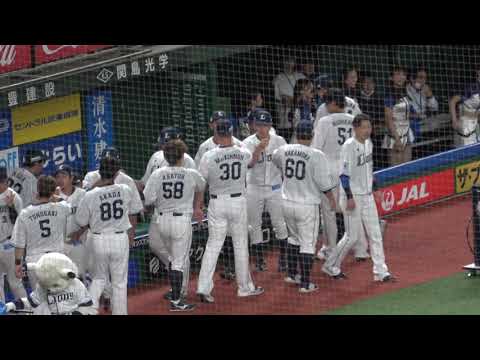 マキノンへ気合を入れる平沼翔太、ベンチを盛り上げるベテラン中村剛也などグラウンドイン前のベンチの様子の現地映像です。