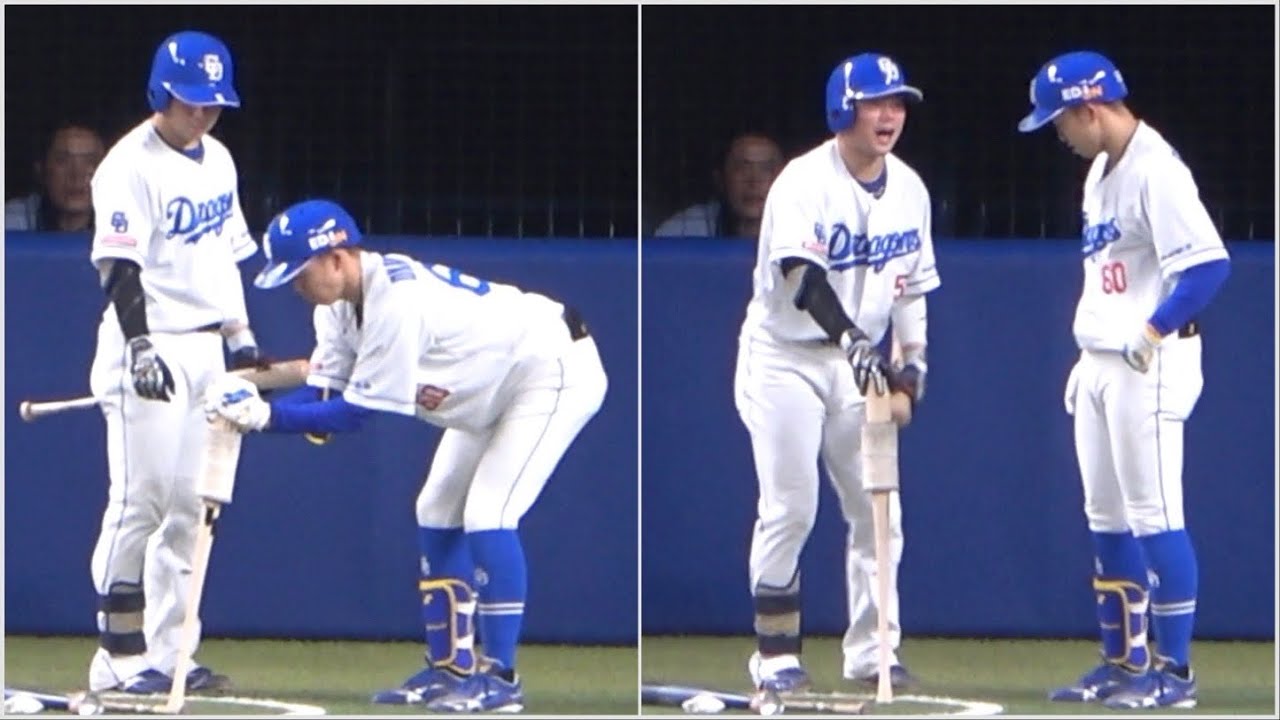 バットの重りが外れず焦る岡林、村松がやっても取れず森野コーチ登場(笑) (2023/08/31)