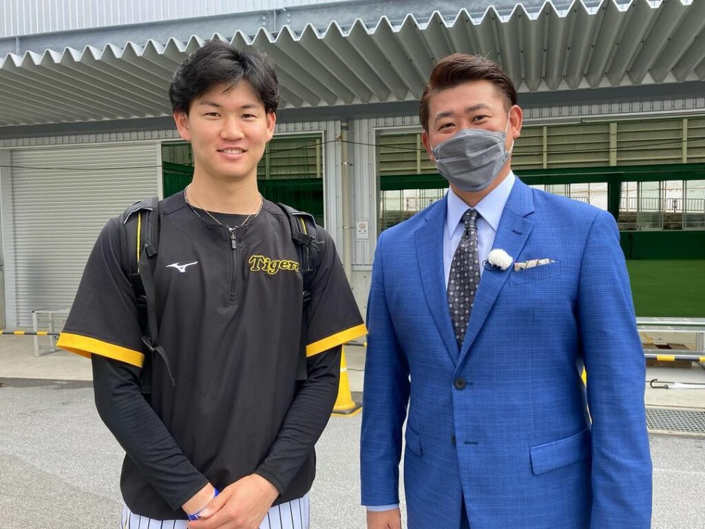 昨日の宜野座キャンプ、及川投手が、取材に来られていた横浜高校の先輩・松坂大輔さんにご挨拶✨