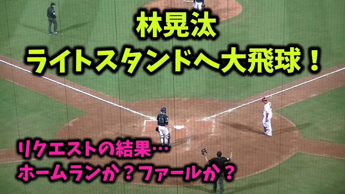 ライトポール際への打球のファウル判定を巡り、広島がリクエスト