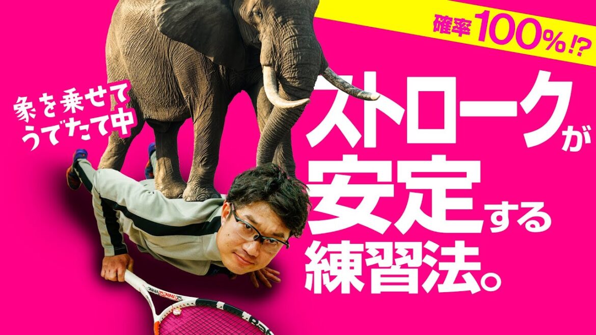 ストロークをもっと安定させたい、もっとラリーを続けたい、そんな願いを叶えるべく浅沼コーチが象を乗せて腕立てをします!