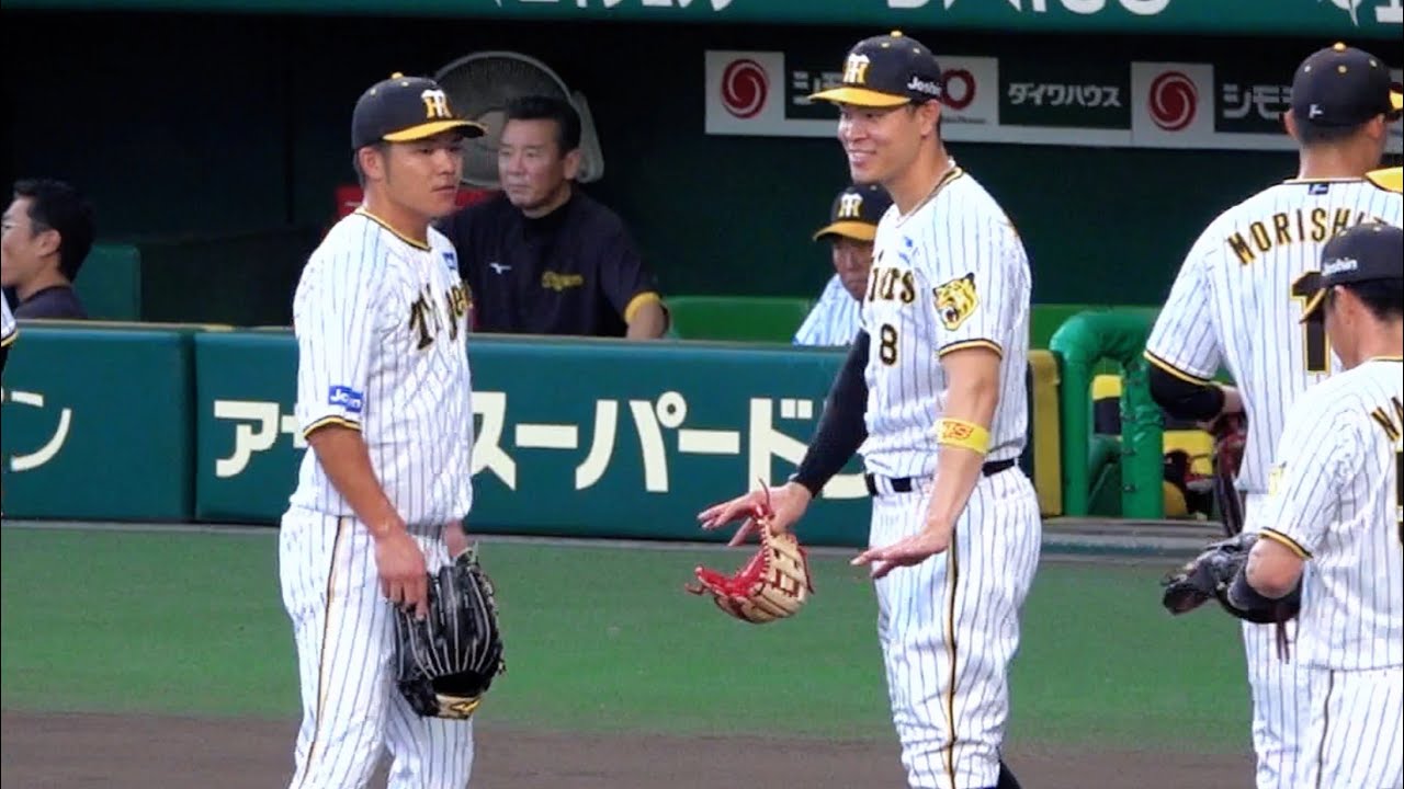 テルご満悦?筒井コーチのノック締めを一発でキャッチした坂本誠志郎に佐藤輝明がジェスチャーで何かを伝える!2023/09/17 阪神タイガース 甲子園