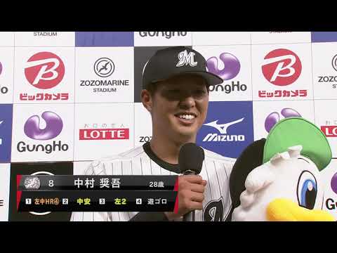 2020/6/25 マリーンズ・中村奨吾選手のヒーローインタビュー動画。