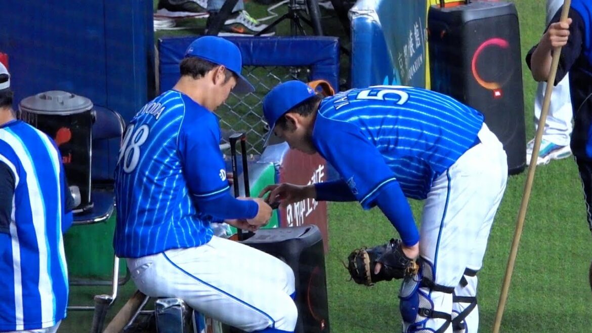 京田と山本の悪巧み?楽しそうにネタを仕込んでる試合前のひととき 2023/06/09 横浜DeNAベイスターズ