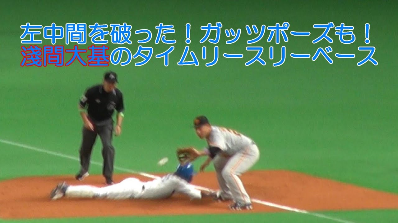 2022年5月27日、札幌ドームでの北海道日本ハムファイターズvs讀賣巨人軍 第1回戦にて、3回裏の淺間大基が打った左中間を破るタイムリースリーベースです