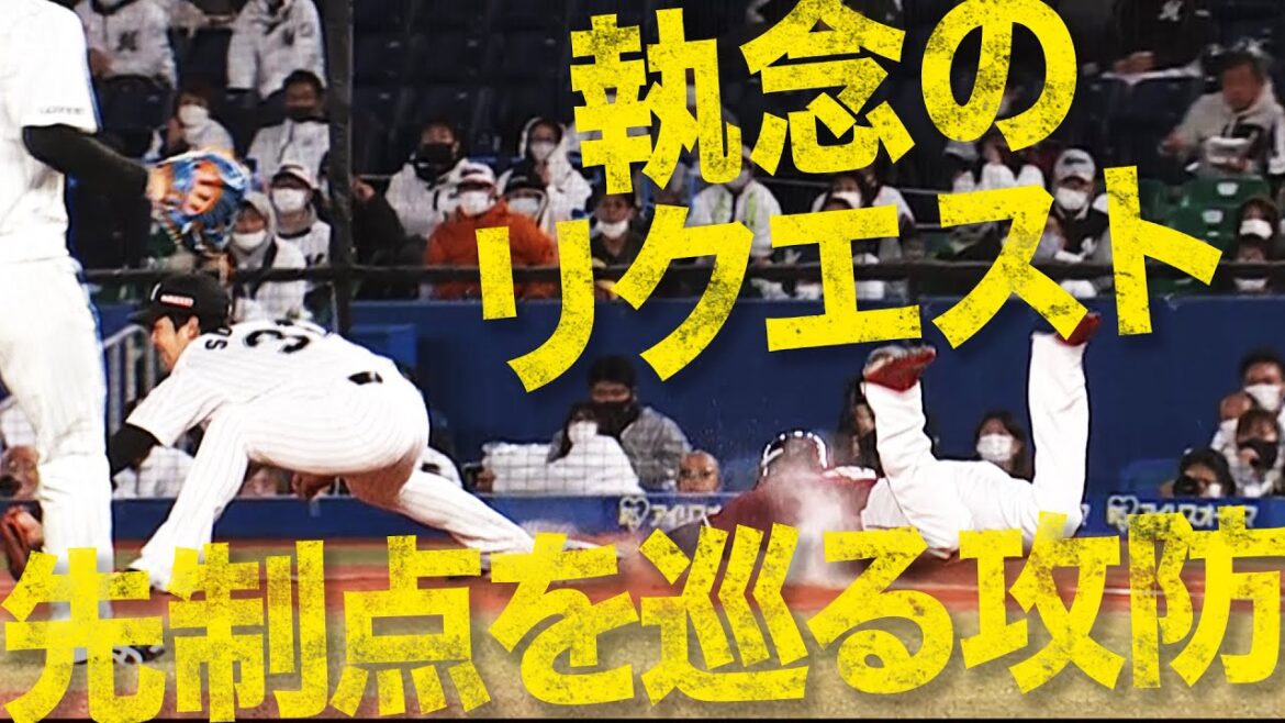 3回、一死満塁先制の好機で打席に立った東北楽天・浅村栄斗。内野への打球に浅村は決死のヘッドスライディングで判定セーフに!ここで直前にリクエスト失敗している井口監督が2度目の要求…これぞシーズン終盤の攻防、激アツの先制点争いをお届け。