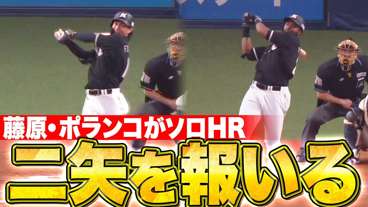 3点ビハインドの8回表に千葉ロッテ・藤原恭大がライトへソロホームランを放つと、9回にはポランコがソロホームランを放ち1点さに詰め寄る。