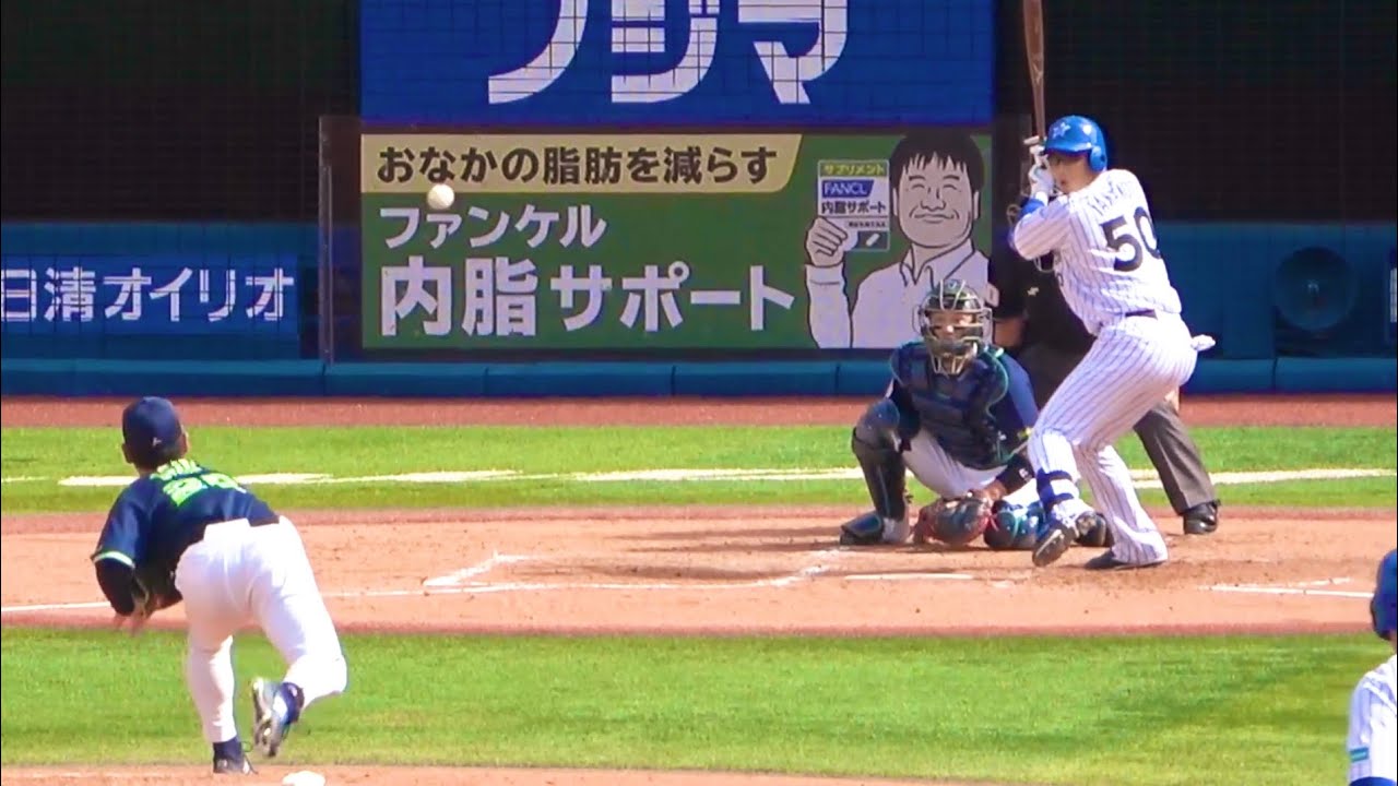 小川泰弘の超スローボールをクリーンヒットする山本祐大 横浜DeNAベイスターズ 2023/9/9