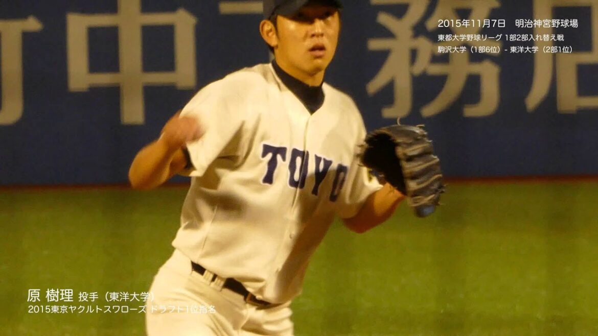 2015年11月7日 明治神宮野球場 東都大学野球リーグ 1部2部入れ替え戦(1回戦) 駒沢大学(1部6位)1-0 東洋大学(2部1位) 東京ヤクルトのドラフト1位指名の原投手と横浜DeNAのドラフト1位指名の今永投手との投げ合いとなった、東都大学野球リーグの1部2部入れ替え戦。 ドラ1対決となった試合は投手戦となり、8回スクイズによる1点を奪った駒沢大学が先勝しました。 Baseball (Interest)Pitcher (Baseball Position)Tokyo Yakult SwallowsTokyo Yakult Swallows (Baseball Team)原樹理東京ヤクルトスワローズ NPBHUB.COM | The Fanbase of Nippon Baseball & Nippon Professional Baseball