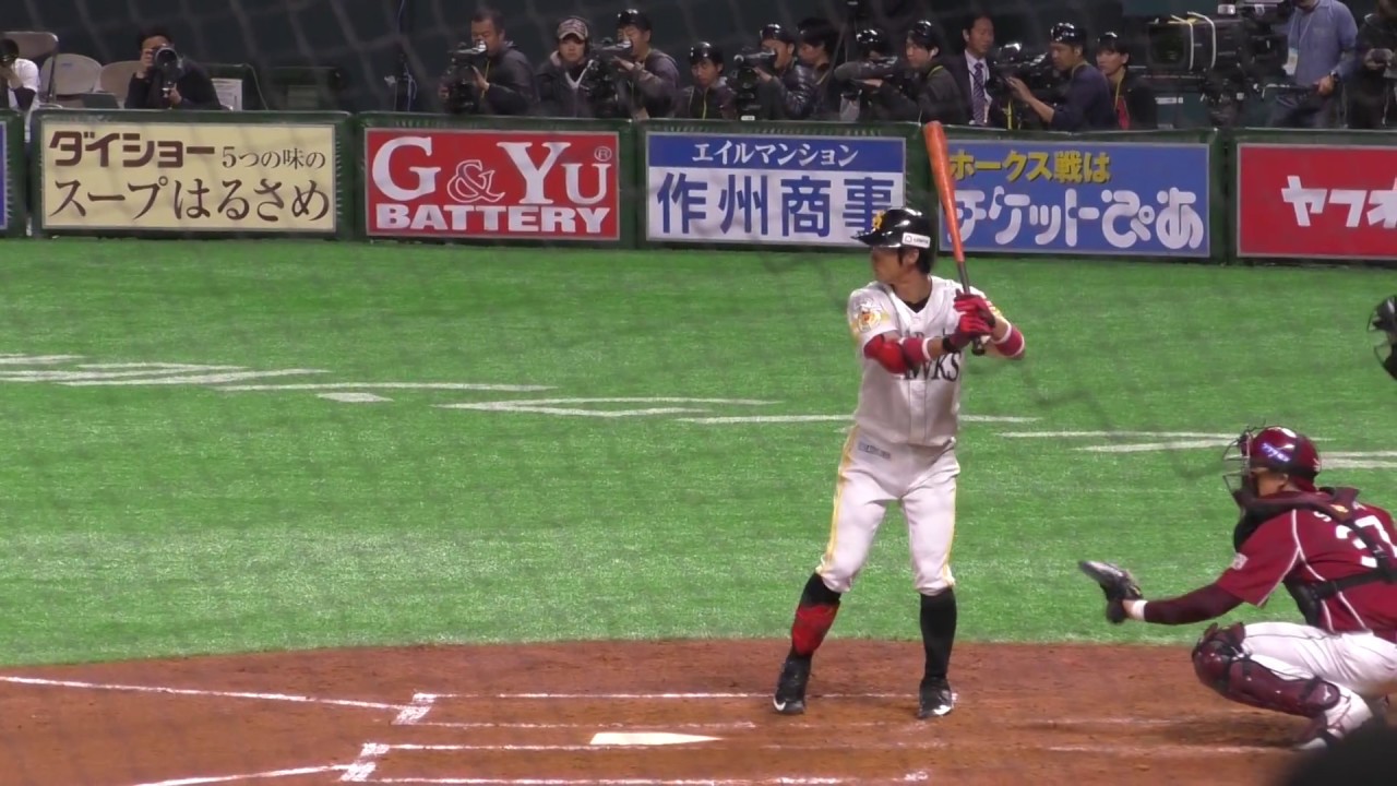 ホークス 明石健志 2017初打席初ヒット! 2017.4.23