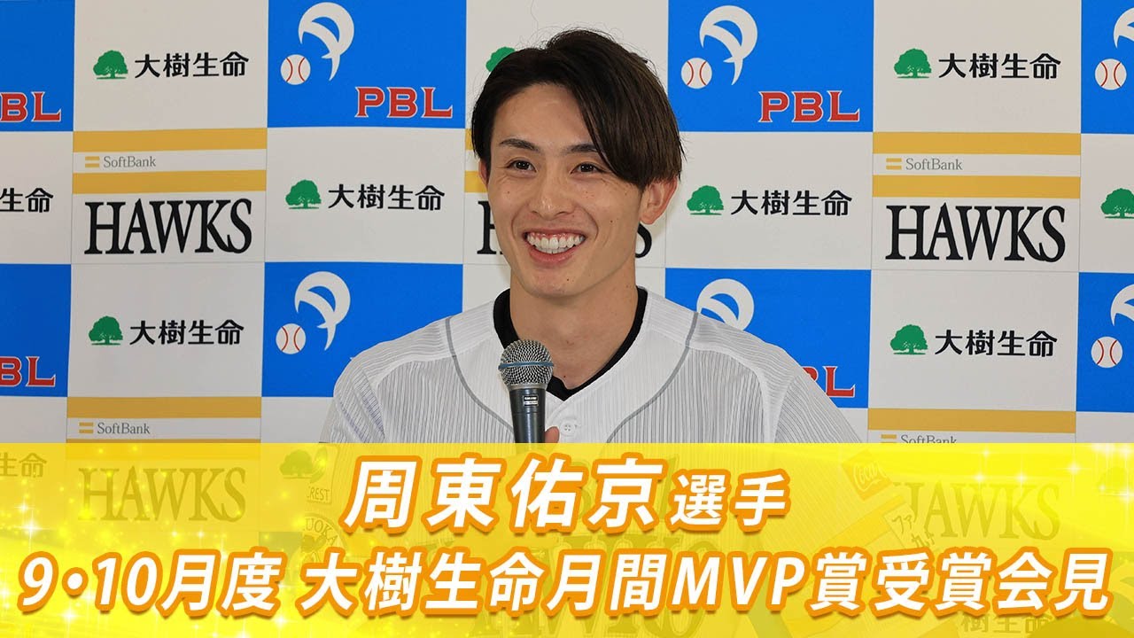 9・10月度の「大樹生命月間MVP賞」パ・リーグ打者部門において、ホークスの周東佑京選手が初選出!会見の模様をお届けします。 ▼9・10月月間成績 【出場】26 試合【打率】.330【安打】34【本塁打】1【打点】8【盗塁】12 #周東佑京 #大樹生命月間MVP賞 #sbhawks #福岡ソフトバンクホークス Fukuoka SoftBank HawksFukuoka SoftBank Hawks Official ChannelFukuoka SoftBank Hawks Official VideoOfficial ChannelOfficial VideoPACIFIC LEAGUE福岡ソフトバンクホークス NPBHUB.COM | The Fanbase of Nippon Baseball & Nippon Professional Baseball