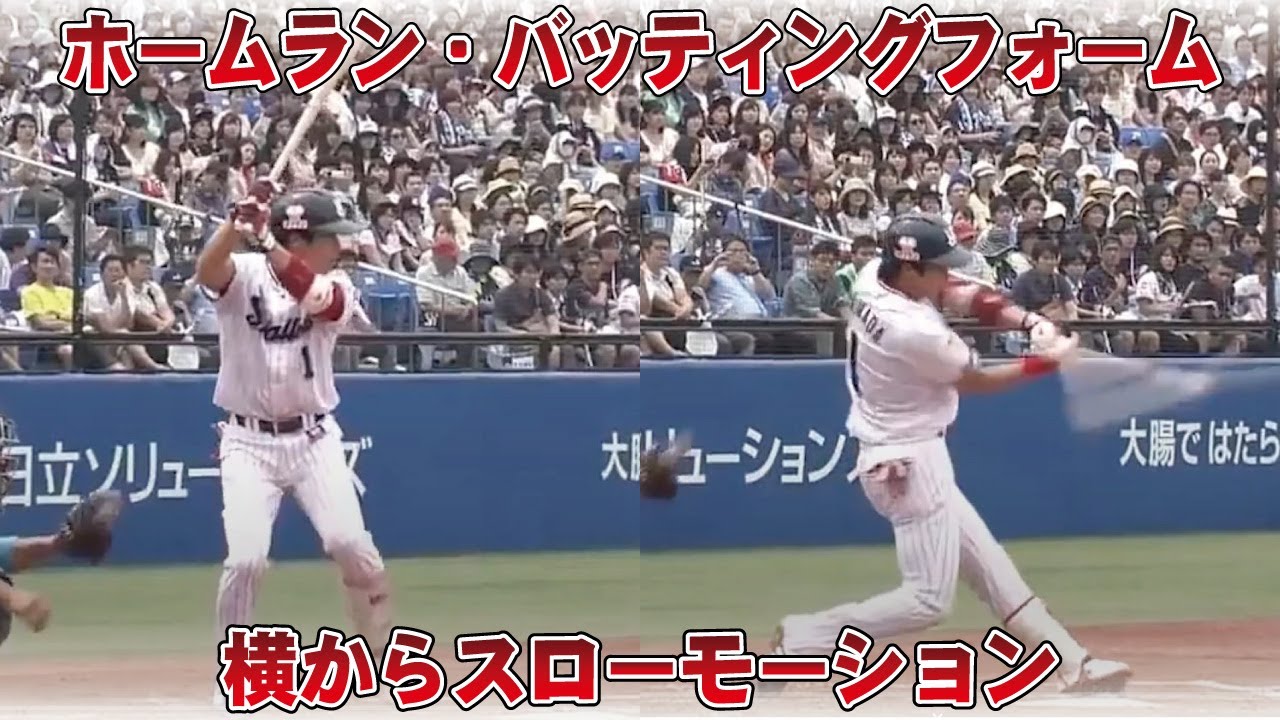 山田哲人選手のバッティングフォームを繰り返し見る。