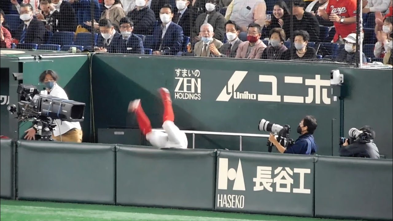 【凄いハッスル!】上本崇司カメラマン席に飛び込むファインプレー Hiroshima Toyo Carpファインプレー上本崇司広島東洋カープ NPBHUB.COM | The Fanbase of Nippon Baseball & Nippon Professional Baseball