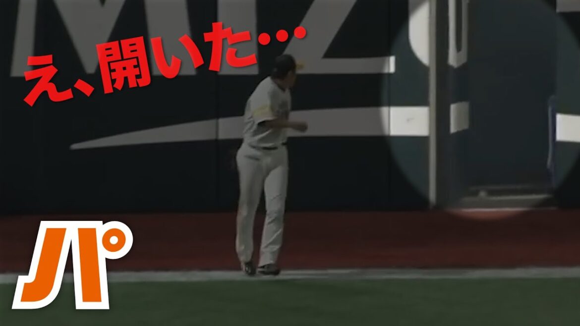 【名場面プレイバック】2015年4月21日 福岡ソフトバンクと東北楽天による一戦。左翼手の内川聖一が打球を追い掛け、フェンスに激突しながら捕球を試みる。この衝撃により、テラスの扉が開く…。