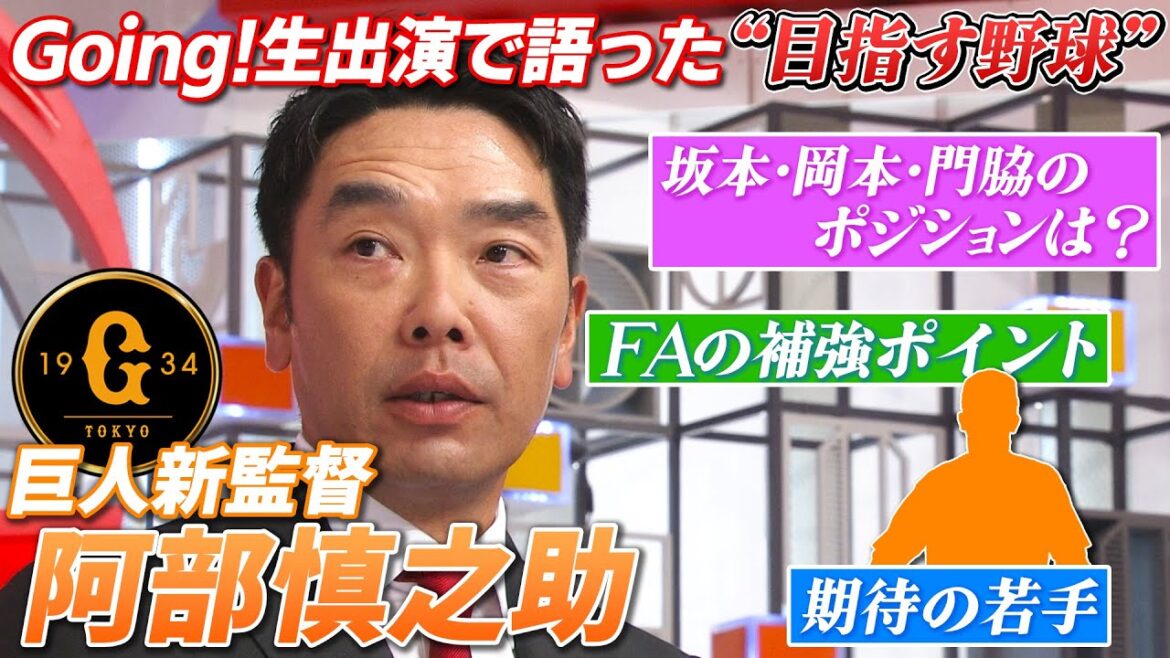 巨人の新監督に就任した阿部慎之助さんがGoing!Sports&Newsに生出演。現在のチーム状況、来季への展望を語ってくれました。⚪︎×クイズや先輩の高橋由伸さんとの共演も見どころです。