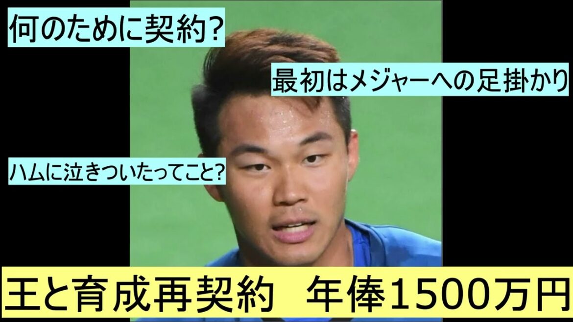 王柏融と育成再契約 年俸1500万円 背番号「199」