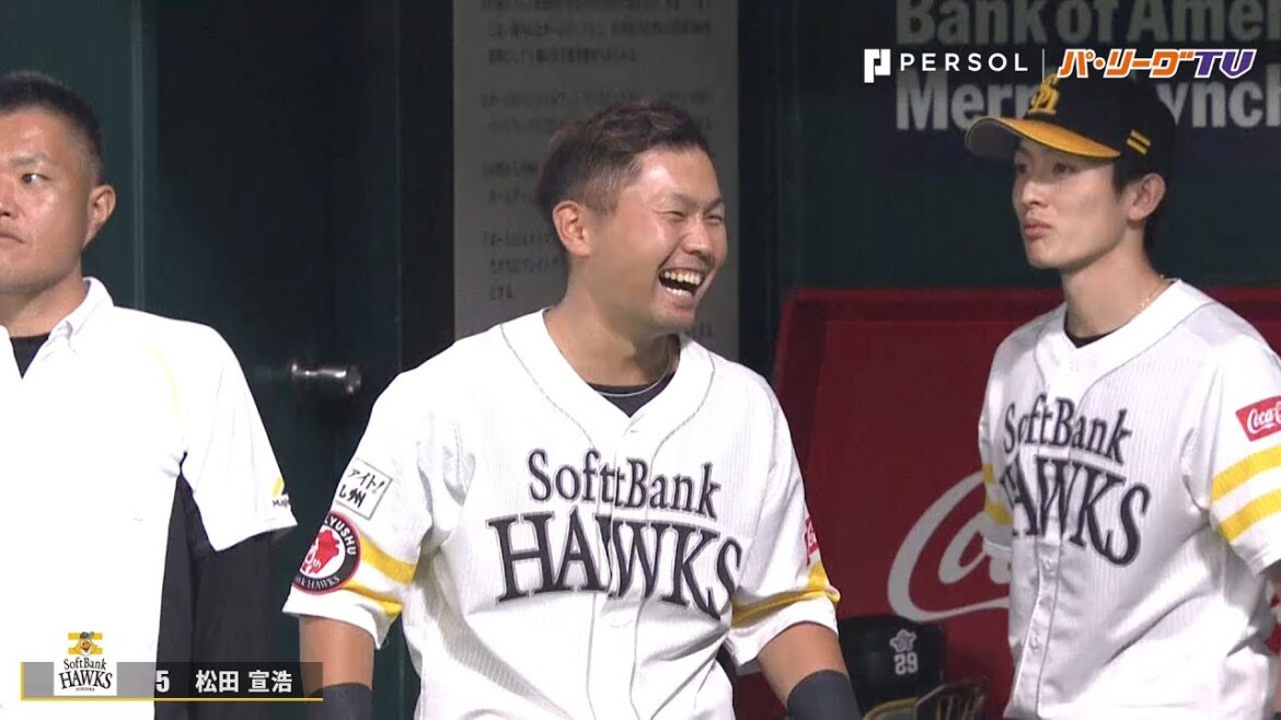 福岡ソフトバンク・松田宣浩の完璧なホームラン。1塁側ベンチを見てみると、大興奮していたのは中村晃!! その様子をご覧ください。