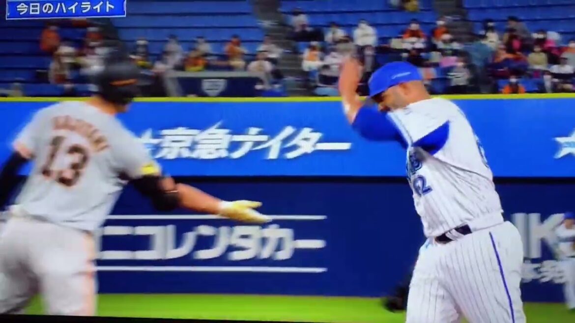 こういうプレーみると心温まる😌#プロ野球#横浜DeNAベイスターズ#エスコバー#読売ジャイアンツ#元DeNA#梶谷隆幸#元同僚#友情#珍プレー#男は黙って投げるだけ