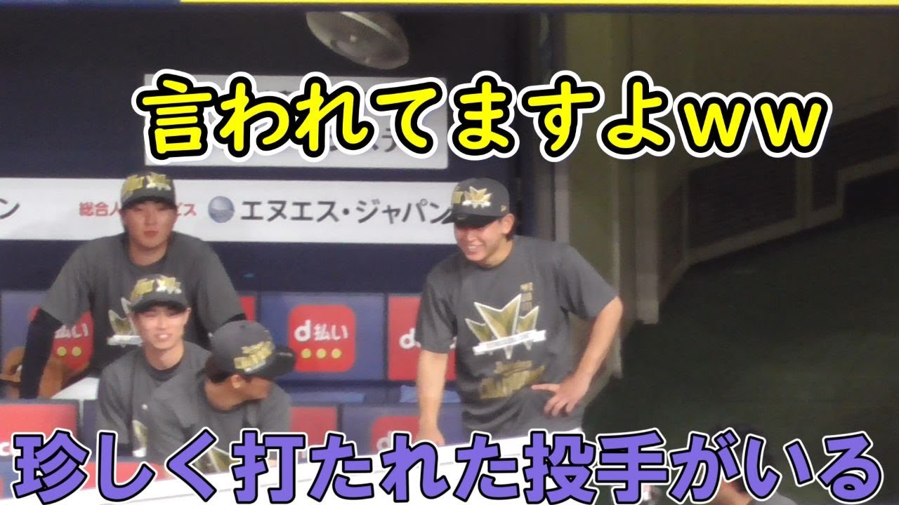中嶋監督による優勝監督インタビューで「珍しく打たれた投手がいる」という場面で宮城大弥投手が山本由伸投手をいじってました。