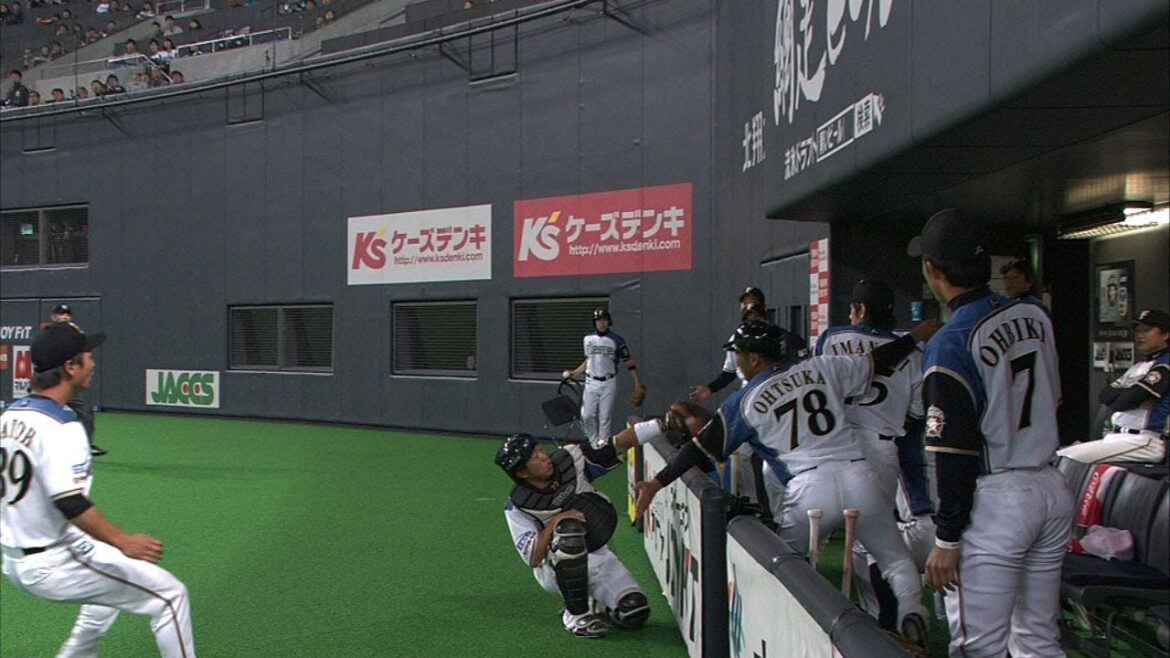 若手の成長が目立つ日本ハムだが、ベテラン勢もそう簡単にポジションを明け渡す訳にはいかない。8回、3塁ベンチ前へ上がったファールフライを鶴岡がギリギリで捕球すると、タッチアップを狙う1塁ランナーの進塁を俊敏なスローで防いだ。(3月3日 日本ハム-ヤクルト) 0303201303032013年3月3日Hokkaido Nippon-Ham Fightersオープン戦スワローズパ・リーグパシフィックリーグファイターズヤクルト北海道北海道日本ハムファイターズ好プレー日ハム日本ハム札幌ドーム東京鶴岡鶴岡慎也 NPBHUB.COM | The Fanbase of Nippon Baseball & Nippon Professional Baseball