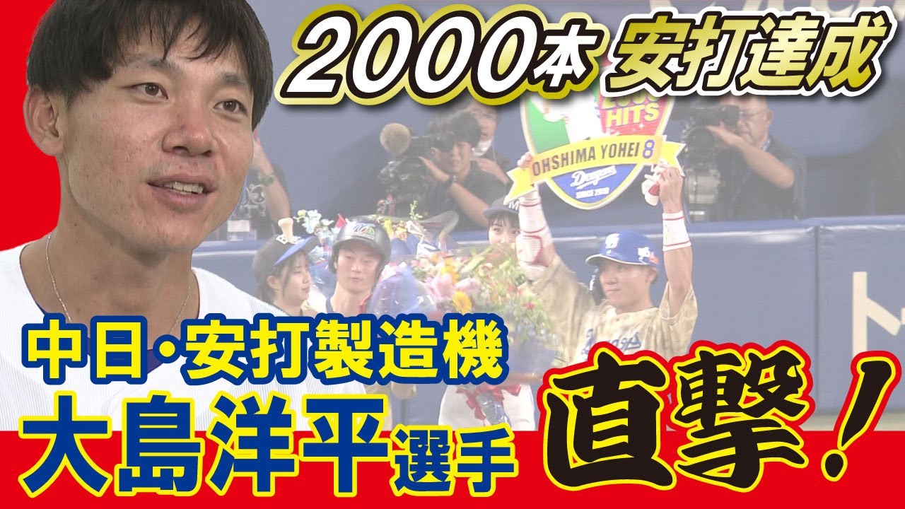 ついに通算2000本安打を達成した大島洋平選手。プロ野球史上55人目、大学・社会人野球出身者としては史上4人目の快挙に、バンテリンドームナゴヤは大きな歓喜に包まれました。