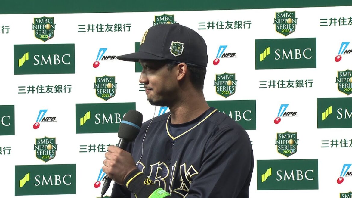 2023年10月31日(火)に阪神甲子園球場で行われた「SMBC日本シリーズ2023」第3戦のヒーローインタビューは5回に2点タイムリーツーベースを放った宗佑磨選手