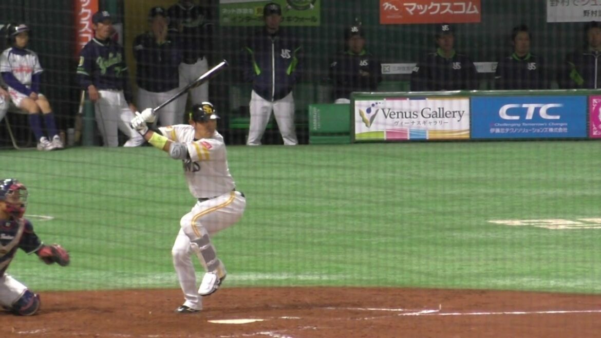 スロー映像)ソフトバンク 内川聖一 センター返し バッティングフォーム 2016.3.12