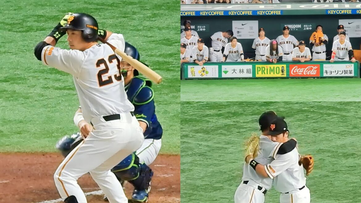【熱男引退試合】松田宣浩の現役最終打席を総立ちで見守る巨人ベンチ。ライトスタンドからはソフトバンク時代の応援歌も鳴り響く。最後は坂本勇人・原監督と熱き抱擁 2023.10.1