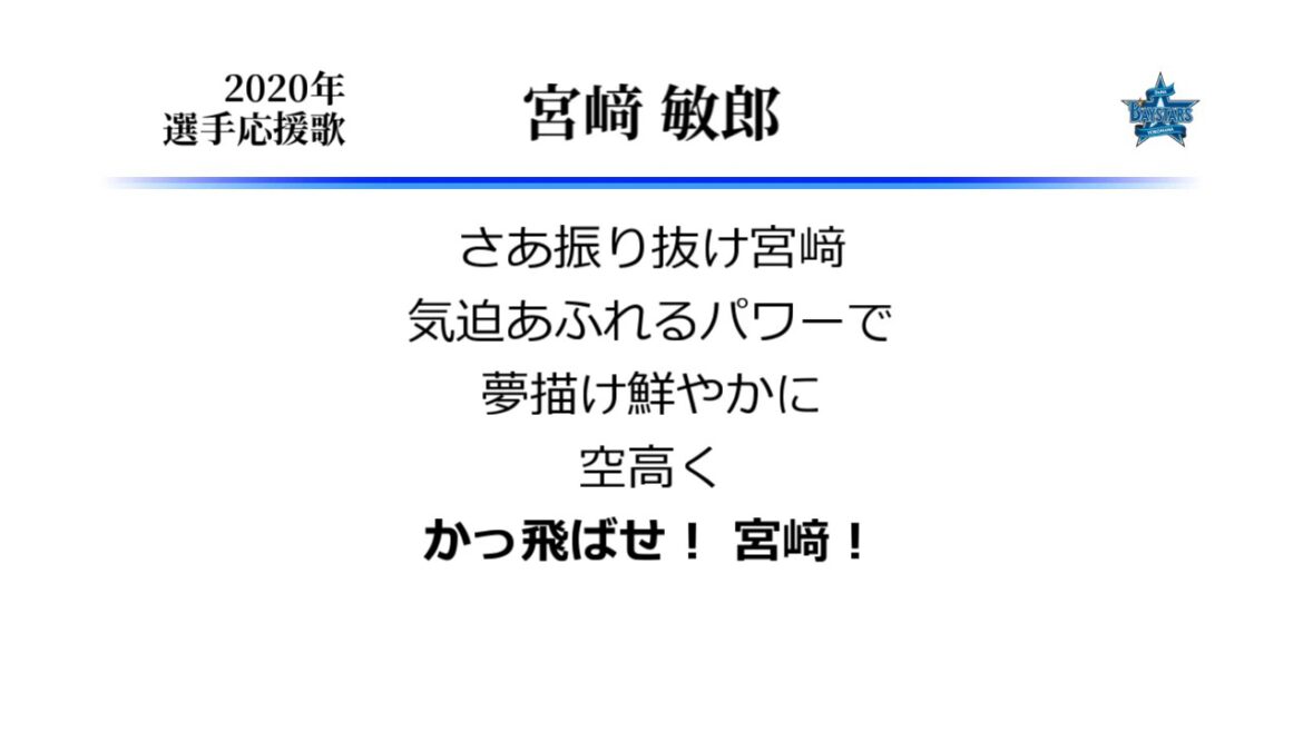 (訂正 : 0:28~のコメント ×「巨人を退団」→○「横浜を退団」or「巨人へ移籍」 お詫びして訂正いたします) 横浜宮崎選手の応援歌です。ハマのプーさん。 遅くなりましたが今年もよろしくお願いします。夢を鮮やかに描きたいですね。 (3年前の新年の挨拶を使い回し) Toshiro Miyazaki (Baseball Player)YOKOHAMA DeNA BAYSTARSYokohama DeNA BayStars (Baseball Team)なんぶふじ宮崎敏郎宮﨑敏郎応援歌横浜DeNAベイスターズ NPBHUB.COM | The Fanbase of Nippon Baseball & Nippon Professional Baseball