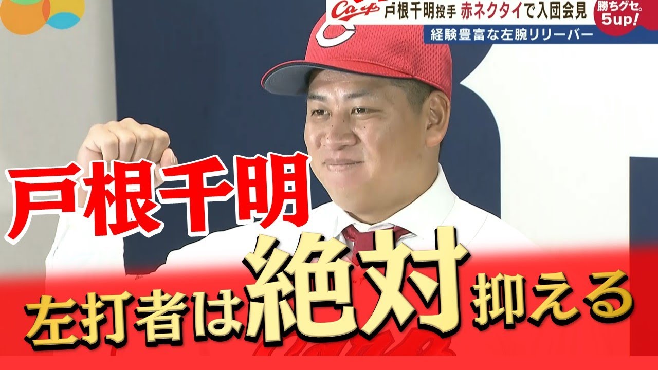 プロ野球では初めての試み、現役ドラフトで巨人からカープへの移籍が決まった戸根千明投手。マツダスタジアムで入団会見が行われました。