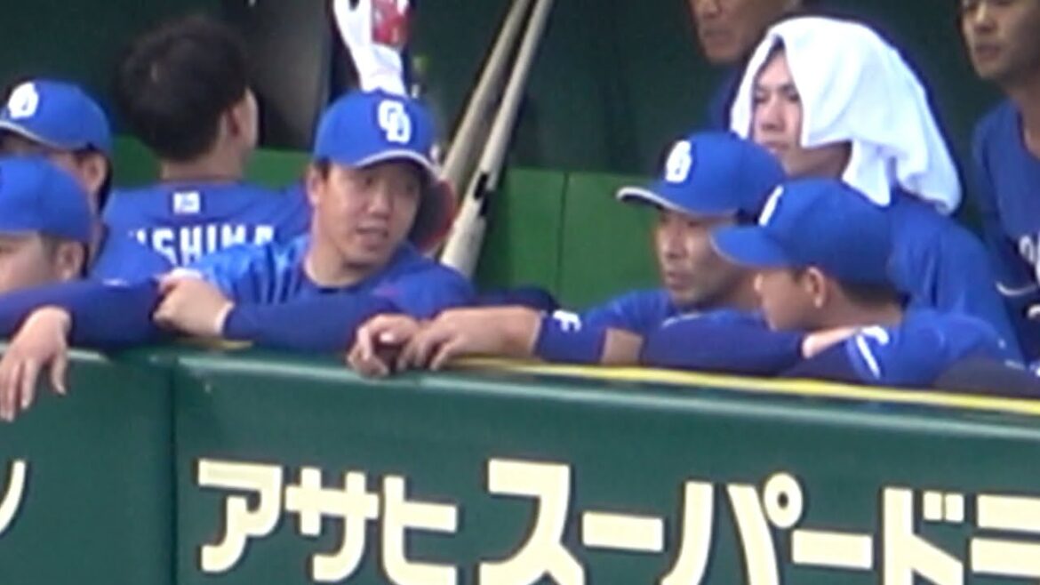先発翌日にベンチ入りした柳、福田&高橋周平と仲良しトリオで並んでお喋り (2023/06/28)