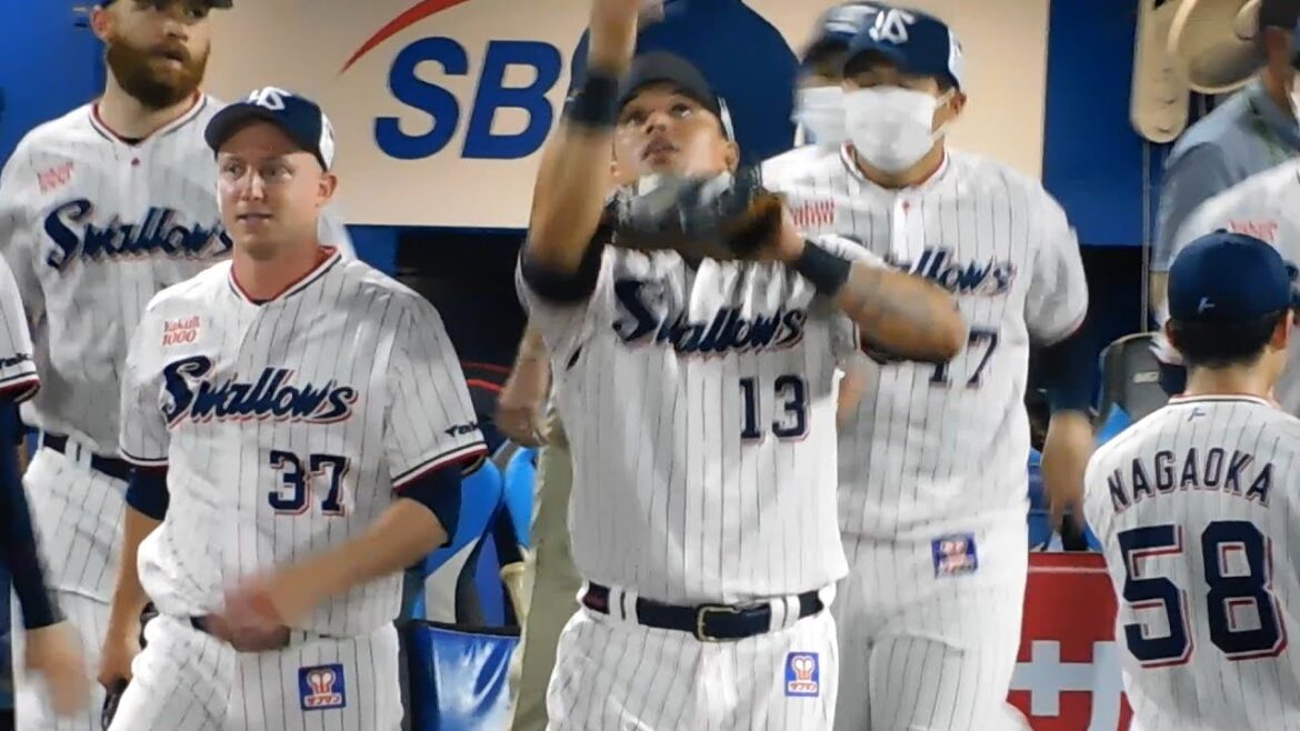 オスナ、マクガフに自分の好守ぶりをアピールする Tokyo Yakult Swallowsオスナマクガフマクガフ 野球東京ヤクルトスワローズ NPBHUB.COM | The Fanbase of Nippon Baseball & Nippon Professional Baseball