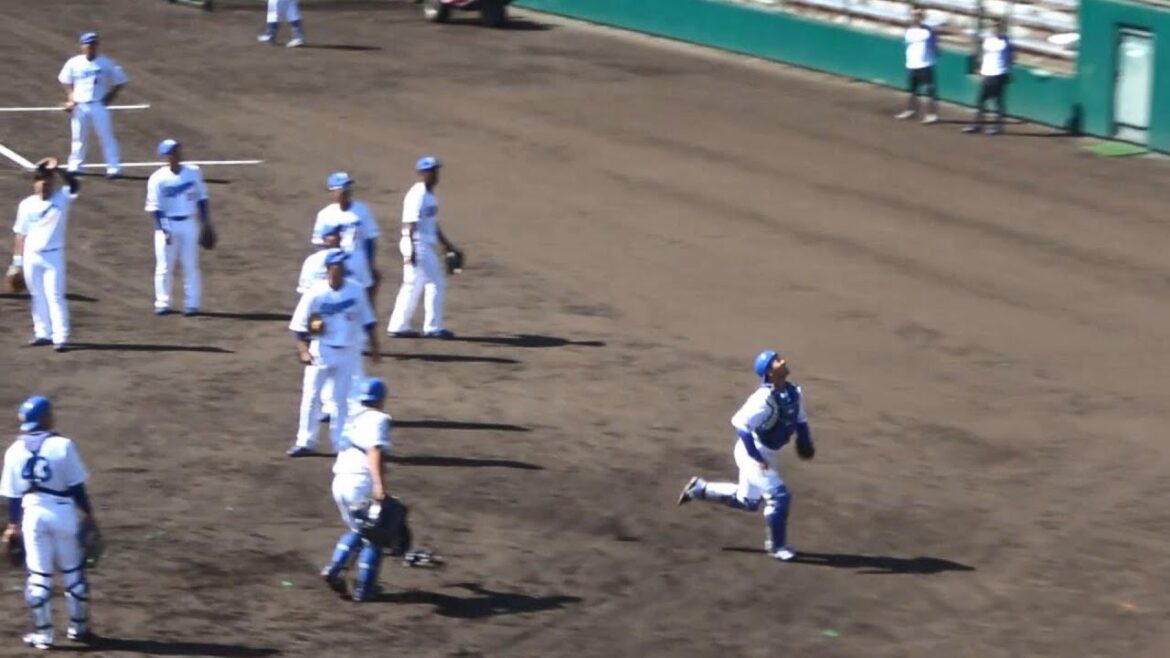 シートノック締めのキャッチャーフライを石橋がナイスキャッチ!スタンドから大きな拍手!(2023年10月25日)