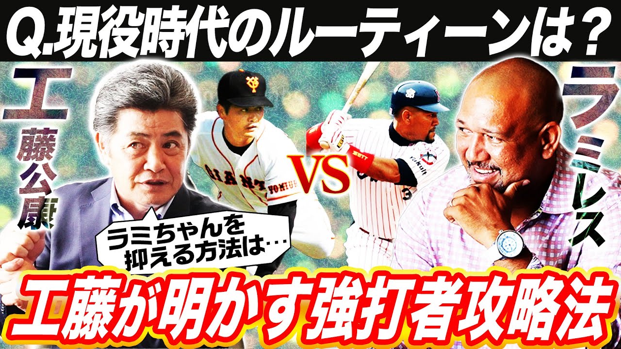 工藤公康とラミレスが選手時代の対決を振り返る!通算224勝を挙げ選手時代は14度のリーグ優勝、11度の日本一を経験した名投手・工藤公康!一方、通算HR380本!2017安打を放ち外国人選手としてプレーヤー部門初の野球殿堂入りを果たしたラミレス!球史にその名を残す二人が今だから話せる現役時代のお互いの攻略法とは?一流同士の対決の裏に隠された緻密な駆け引きとは?さらに一流のルーティーンも公開!工藤さんが登板前に必ず行っていた㊙︎リーティーンとは?試合前にラミレスが欠かさなかった意外な行動とは?当時の興奮と記憶が今蘇る選手目線の超貴重トーク満載!永久保存版!工藤公康×ラミレスSPコラボ最終回!ぜひ最後までご覧ください⚾️