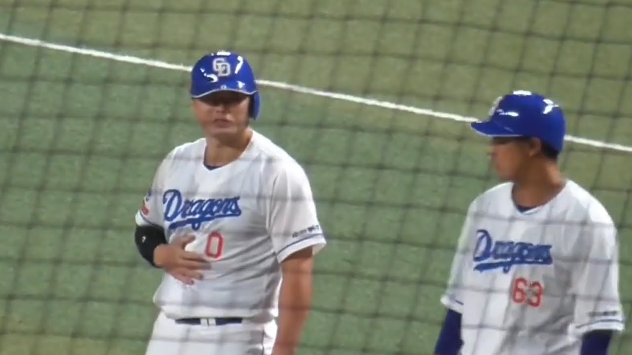 【キャンプ紅白戦】細川成也の第一打席 梅津晃大からお腹をかすめる死球 一塁ベース上でお腹を気にする 中日ドラゴンズ秋季キャンプ 2023/11/05