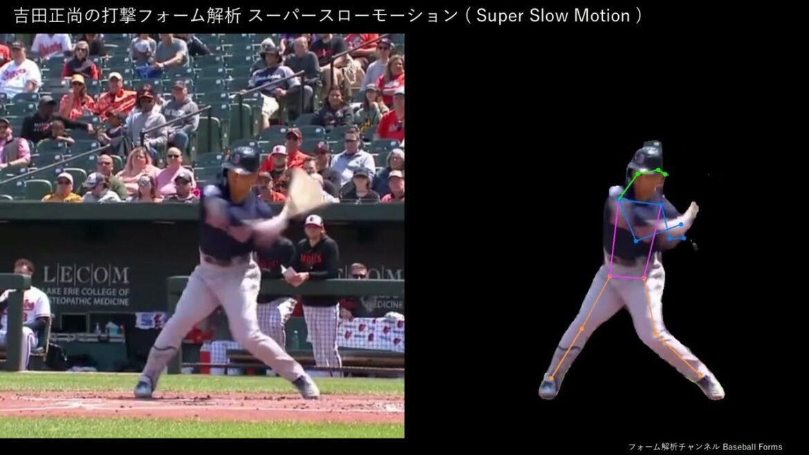 吉田正尚の打撃フォーム解析 スローモーション 2023年4号ホームラン 【横から】