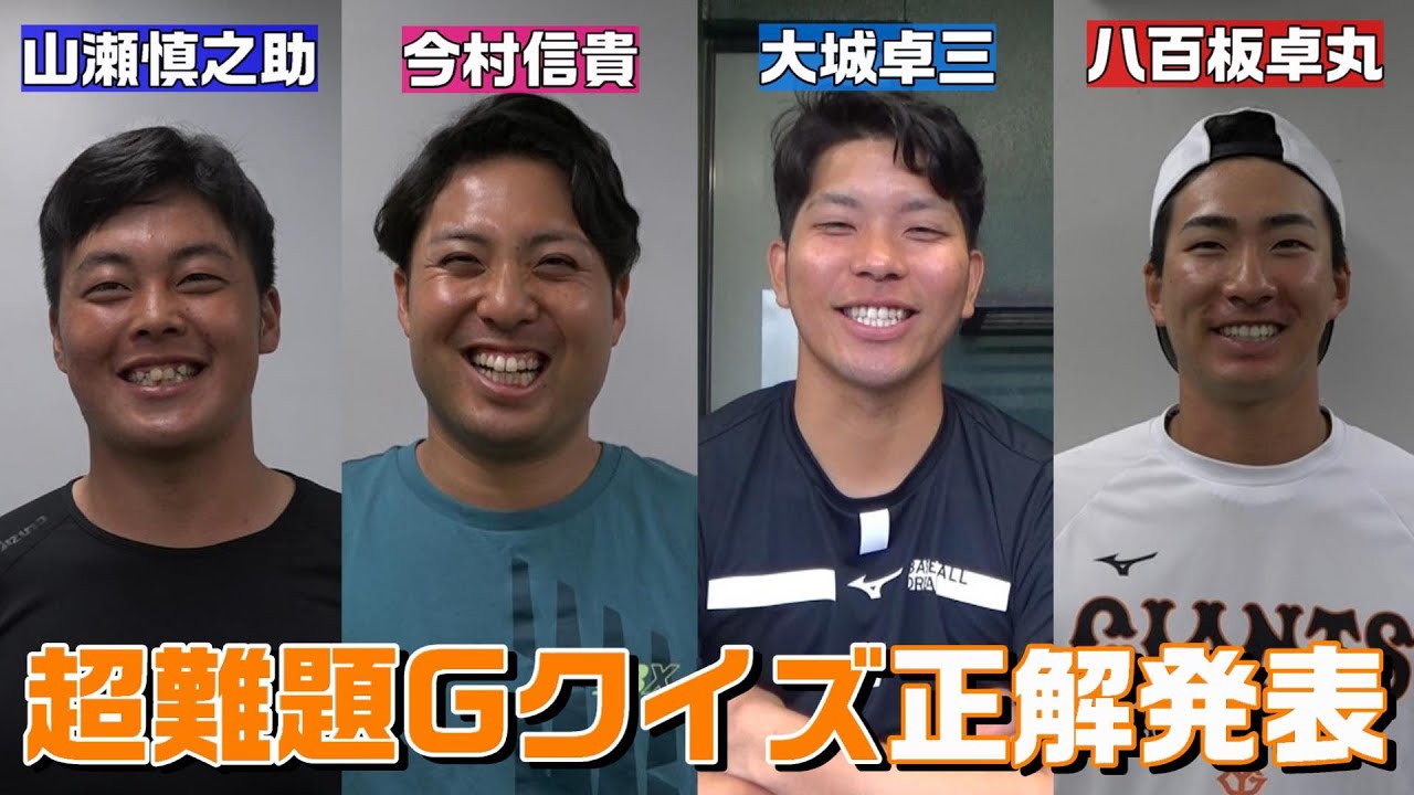 球団公式SNSアカウント連動企画として実施中の「#超難題Gクイズ」!大城卓三、八百板卓丸、今村信貴、山瀬慎之助、4選手が出題したクイズの正解を発表します!