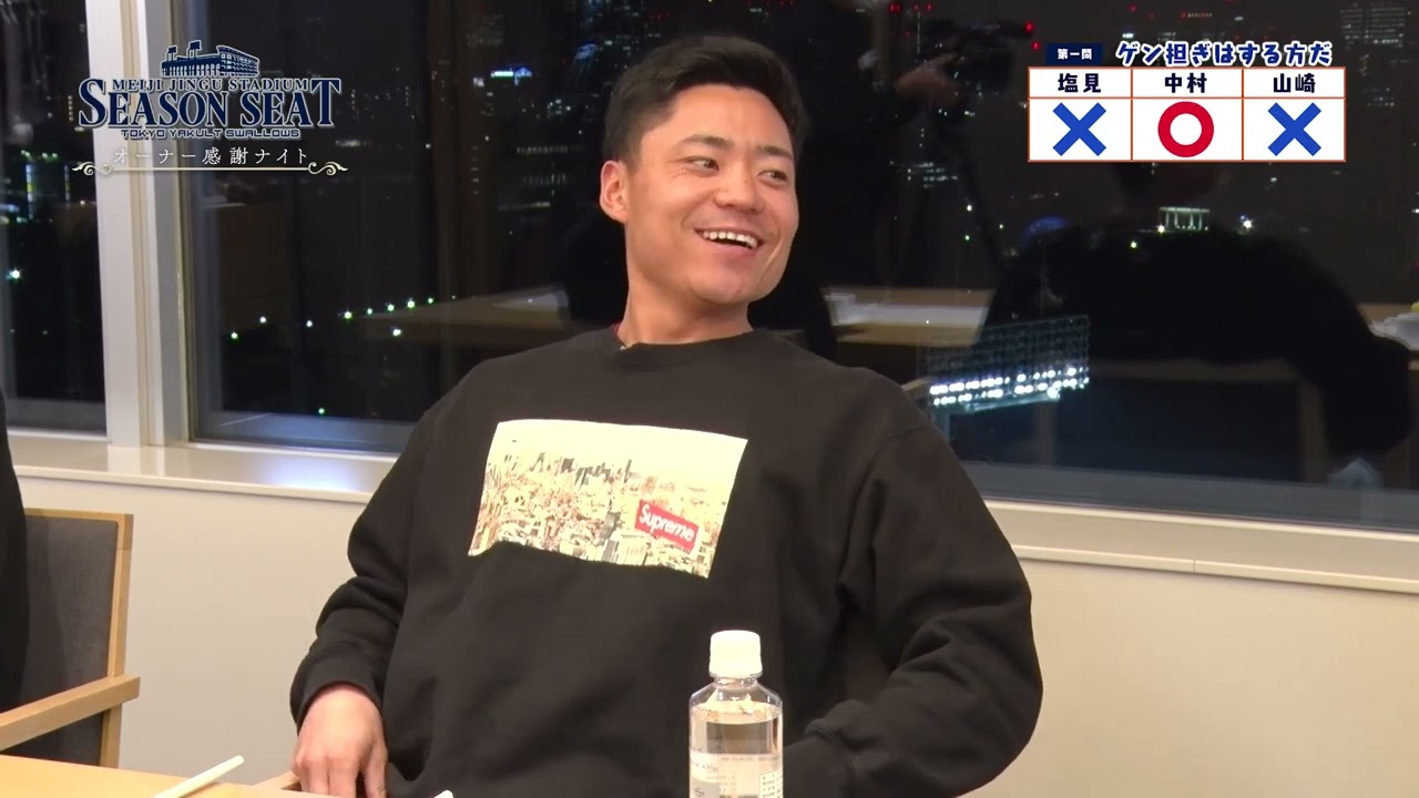 中村悠平選手、塩見泰隆選手、山崎晃大朗選手による○×ゲームやトークショーをご覧ください。