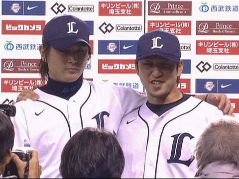 投打のヒーロー、涌井秀章と中島裕之がお立ち台に上がった。(2010年6月25日 埼玉西武ライオンズ対オリックス・バファローズ) #埼玉西武ライオンズ #オリックスバファローズ #涌井秀章 #中島裕之 #ヒーロー #NPB #プロ野球 0625201006252010年6月25日Tohoku Rakuten Golden Eaglesオリックスお立ち台パ・リーグパシフィックリーグバファローズヒーローインタビューライオンズ中島裕之埼玉大阪東北楽天ゴールデンイーグルス涌井秀章神戸西武西武ドーム NPBHUB.COM | The Fanbase of Nippon Baseball & Nippon Professional Baseball