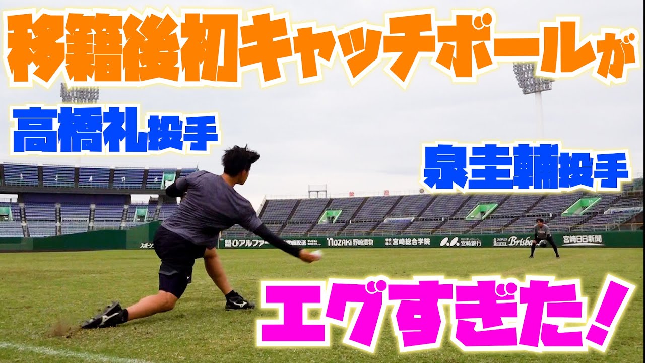 11月9日、#移籍記者会見 を終えた #高橋礼 投手と #泉圭輔 投手が向かったのは、#サンマリンスタジアム宮崎 ! そこで見せた、移籍後初のキャッチボールは、スタッフも驚くほどの良い球連発でした!!