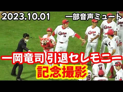 カープ一岡竜司、引退セレモニー! ~ 監督 & チームメイト & スラィリーと記念撮影
