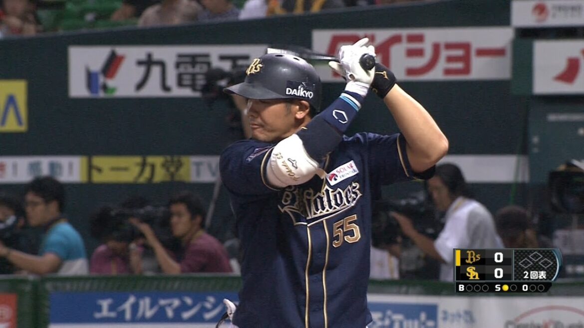 2回、オリックスのこの回先頭打者T-岡田がスタンリッジの変化球を捉えるとボールはライトスタンド中段へ。T-岡田の第13号ソロホームランでオリックスが先制に成功した。(7月8日 ソフトバンク-オリックス)